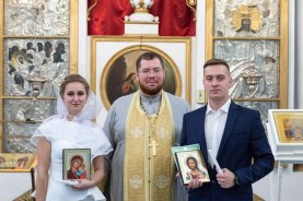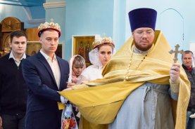 Батюшка также отметил, что в этот день Церковь воспоминает перенесение мощей святых князей Петра и Февронии, которые стали для всего мира образцом супружества, нелицемерной любви и самоотверженного служения ближнему. В этот благословенный день, осиянный светом святых Муромских чудотворцев, в Успенском храме настоятель совершил Таинство венчания супружеской пары – Сергия и Анны. Батюшка сердечно поздравил их и пожелал сохранить любовь и верность на многая и благая лета!