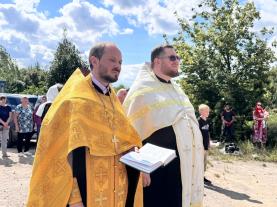 Затем с пастырским словом к собравшимся обратился отец Алексий. Он поздравил всех со знаменательным событием, пожелал укрепления веры, помощи Божией в благих начинаниях и призвал оказывать посильную помощь в восстановлении этого прекрасного храма.