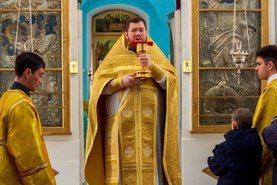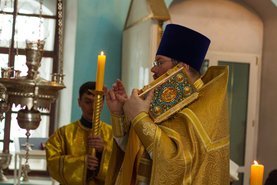 В Свято-Успенском храме села Себино на Божественной Литургии паломники и прихожане вместе с настоятелем молились о предстательстве великого учителя, светильника миру, проповедника покаяния – святого Иоанна Златоуста перед Господом и Пресвятой Богородицей за нас, грешных.