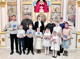 В заключение, настоятель храма иерей Алексий Лысиков поблагодарил всех, кто принимал участие в подготовке Рождественского утренника. Прихожане бурными аплодисментами отметили старания детей, а настоятель храма вручил им сладкие подарки.