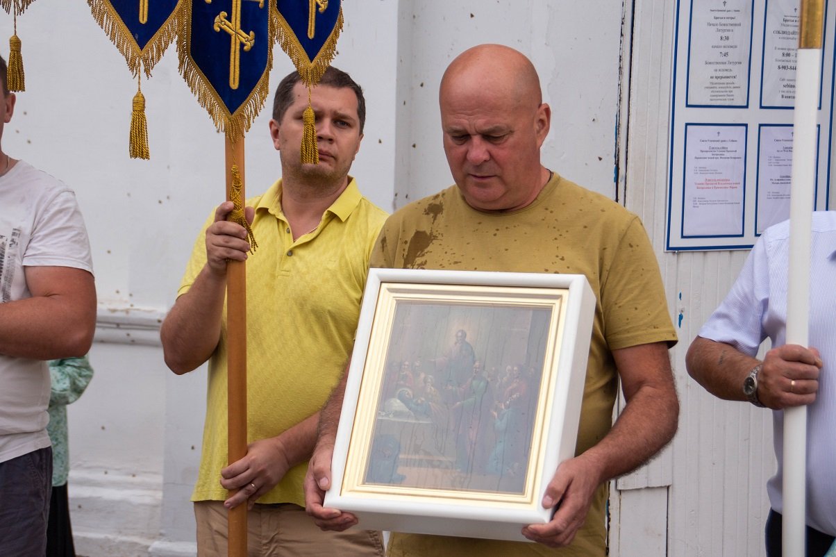По заамвонной молитве настоятель со всеми молящимися совершил крестный ход.