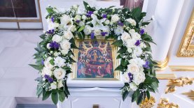 На полиелее из алтаря была изнесена и размещена в центре храма на специально уготованном месте Плащаница Пресвятой Богородицы.