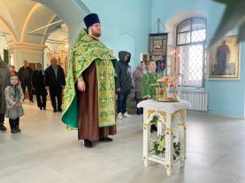 На утрене, после прочтения Евангелия, настоятель храма совершил освящение ваий(верб).
