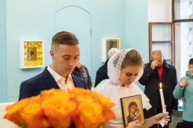 Батюшка также отметил, что в этот день Церковь воспоминает перенесение мощей святых князей Петра и Февронии, которые стали для всего мира образцом супружества, нелицемерной любви и самоотверженного служения ближнему. В этот благословенный день, осиянный светом святых Муромских чудотворцев, в Успенском храме настоятель совершил Таинство венчания супружеской пары – Сергия и Анны. Батюшка сердечно поздравил их и пожелал сохранить любовь и верность на многая и благая лета!