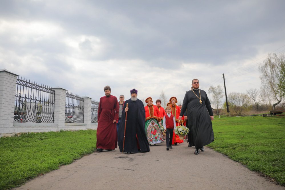 Во время Крестного хода, следовавшего вокруг храма, прихожане соборно со священством и Высокопреосвященнейшим Владыкой восславили Вокресшего Господа нашего Иисуса Христа и блаженную Матрону Себинскую Московскую – святого «воина Христова».