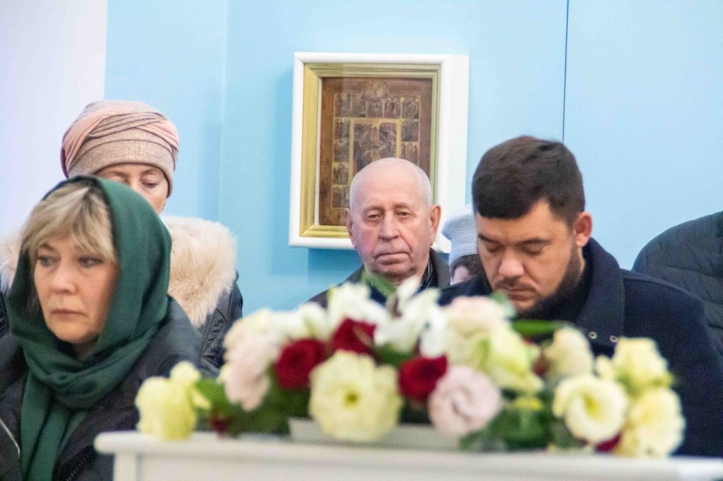За Божественной литургией на сугубой ектении были возглашены особые прошения об Отечестве нашем и защитниках его. По заамвонной молитве состоялось славление Божией Матери.