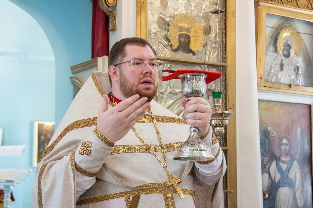 По заамвонной молитве, по традиции, настоятель храма совершил славление святым.