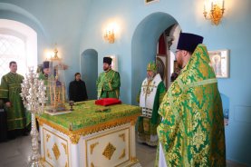 В этот день в храме Успения Пресвятой Богородицы с. Себино прошла праздничная Божественная литургия, которую возглавил Митрополит Тульский и Ефремовский Алексий в сослужении благочинного Кимовского округа иерея Илии Семенова и настоятеля храма иерея Алексия Лысикова.