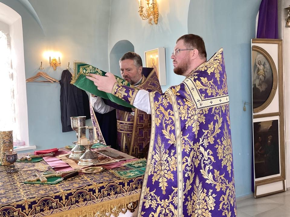 8 марта 2025 года, в день обретения мощей святой блаженной Матроны Себинской-Московской, в нашем храме прошла праздничная Божественная литургия, которую возглавил благочинный Новомосковского округа протоиерей Владимир Лысиков в сослужении настоятеля храма, иерея Алексия Лысикова.