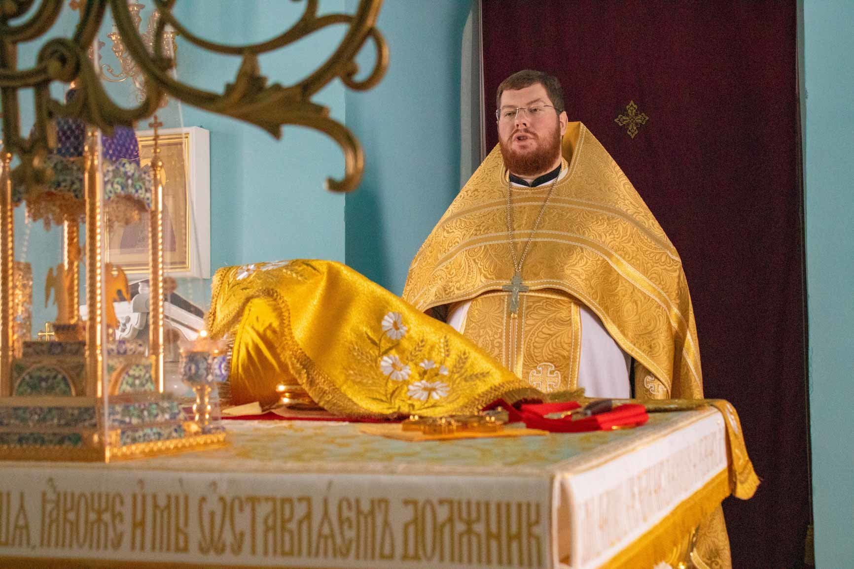 В Свято-Успенском храме села Себино на Божественной Литургии паломники и прихожане вместе с настоятелем молились о предстательстве великого учителя, светильника миру, проповедника покаяния – святого Иоанна Златоуста перед Господом и Пресвятой Богородицей за нас, грешных.