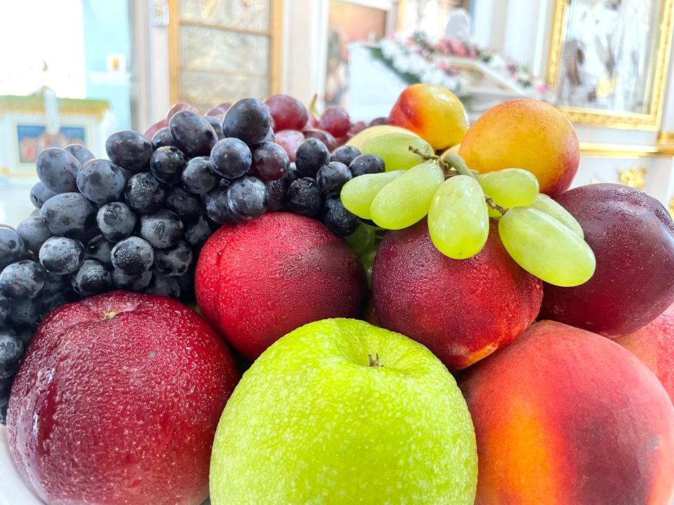 По заамвонной молитве были освящены плоды нового урожая.